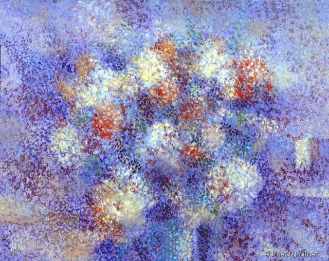 My experiment in using the Pointillist’s technique. A still-life floral bouquet.