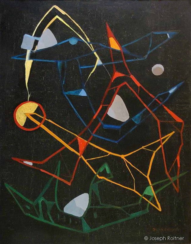 Inspired by interwoven patterns of music by J.S. Bach. Six linear geometrical forms overlap as six instruments play different, non-conflicting melodies in space and time. Perhaps I was ready to shake off old restrictions but still keeping structure and composition.