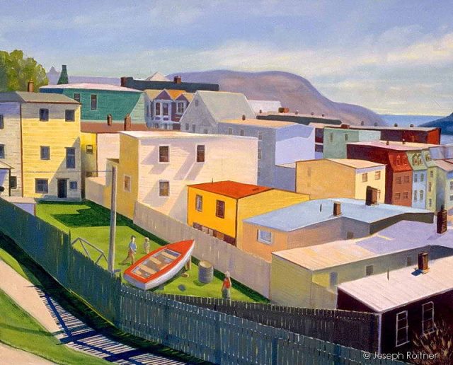 A back lane in the city of St. John’s, Newfoundland showing the Atlantic Ocean and colourful houses. This route was familiar to our son Allan who finished his studies at the University.